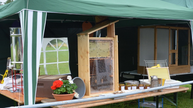 Die Bienen des OGV in einem Schaukasten und weiteres Anschauungsmaterial.
