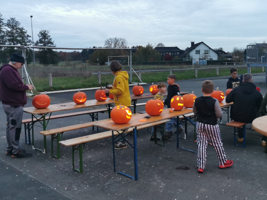 Viel Spass macht auch wieder das Kürbisschnitzen.